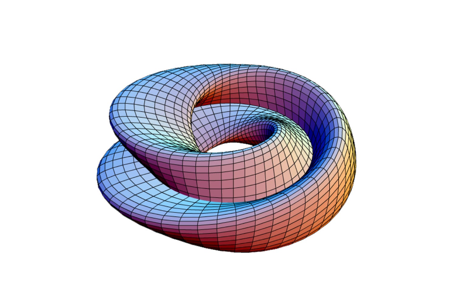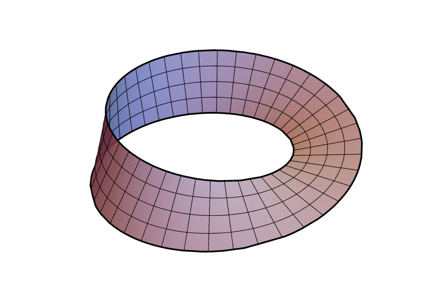 Topology offers a helpful intuition. A Möbius strip is a two-dimensional compact manifold with a single continuous surface. What appears locally as an inside and an outside turns out, through traversal, to belong to one uninterrupted plane. Orientation flips through movement, and the structure cannot be grasped from any single vantage point. It becomes legible only through local charts and the transitions between them.