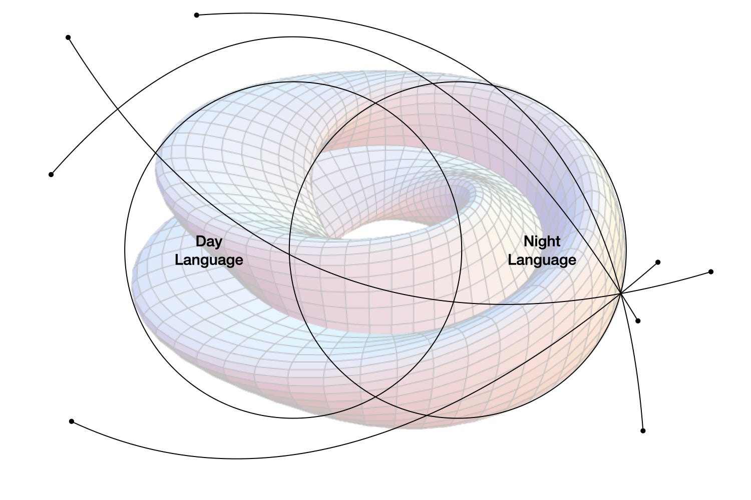 Night language aligns closely with manifold thinking. It is sensitive to nonlinear interaction between dimensions and to path dependent movement through cultural and technological space. It assumes continuous variation rather than discrete states, and treats understanding not as a final position, but as something that must move with the terrain.