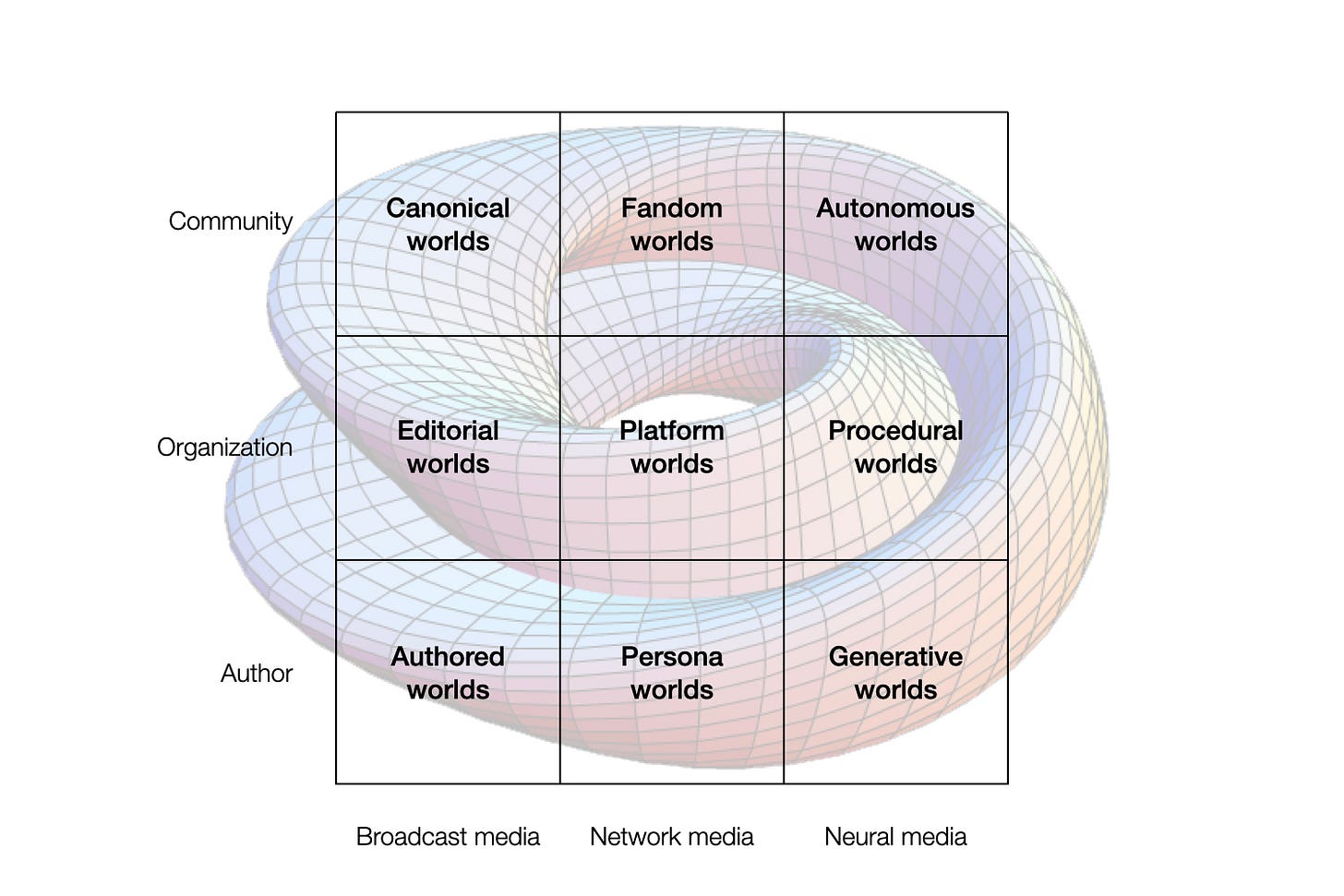 In the transition from networked to neural media, and from organizational to community-driven production of meaning, this space becomes continuous, nonlinear, and path dependent. Actions taken in one domain bend conditions in others. Position matters less than orientation.
