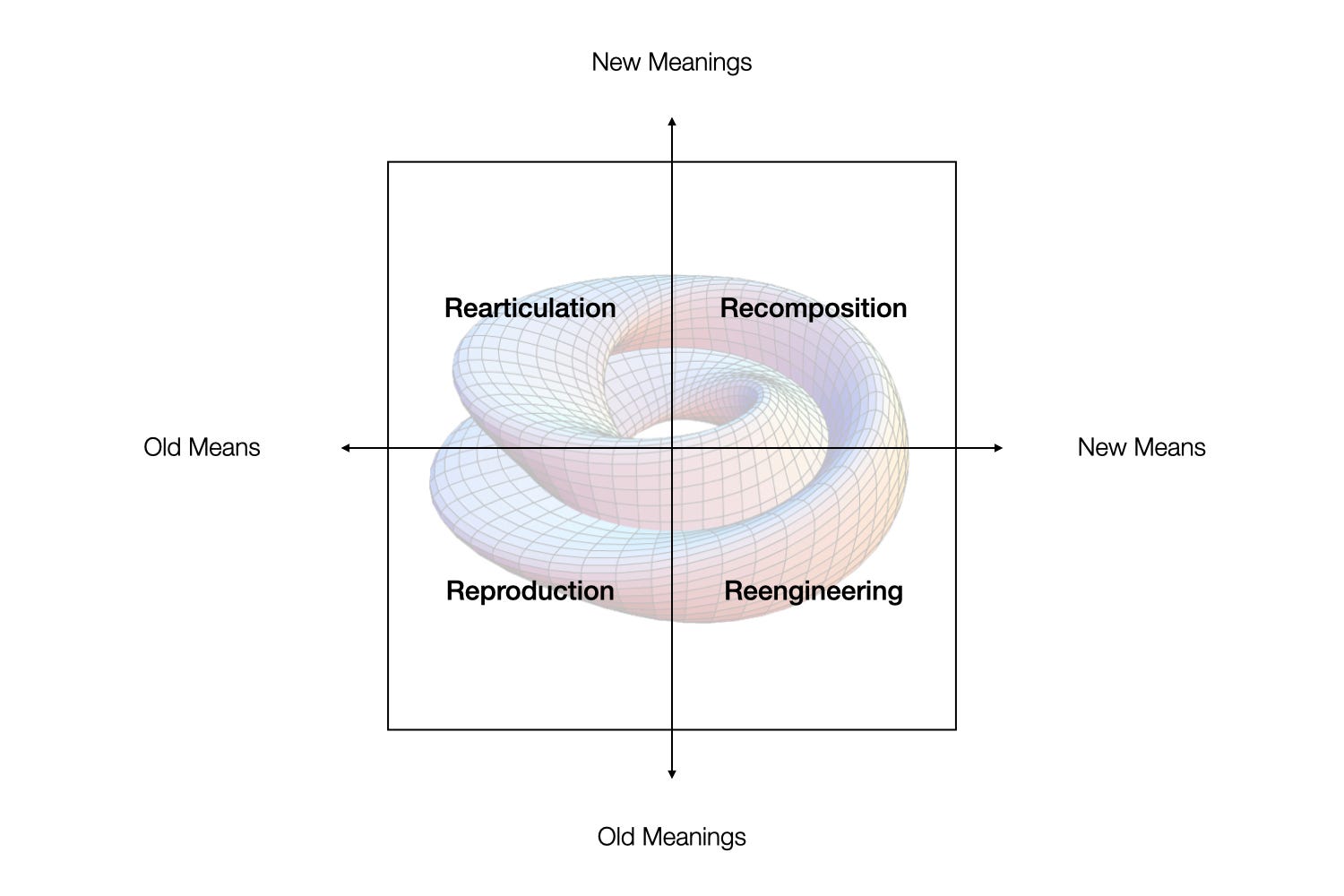 The same diagnostic applies here. Innovation in culture and media can be mapped over two axes: shifts in means, and shifts in meaning.